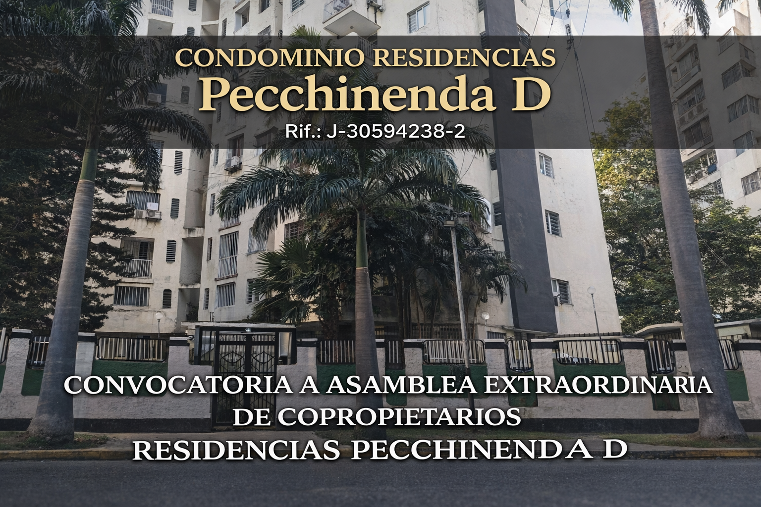 Se convoca a todos los copropietarios y propietarios de las Residencias Pecchinenda D a una Asamblea Extraordinaria que se llevará a cabo el día miércoles 08 de abril de 2026 en el área del lobby del edificio, para tratar lo siguiente: