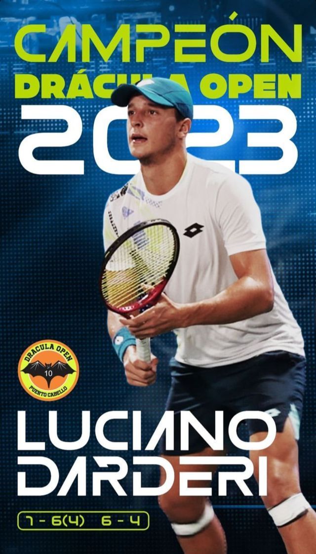 La fiesta en el Centro Nacional de Tenis en Puerto Cabello cerró con broche de oro, el «Drácula Open 2023» en su tercera edición tiene nuevo monarca, el italoargentino Luciano Darderi, luego de haber superado en la final al portugués Gonçalo Oliveira por 7-6(5), 6-2 tras 1h50m de juego.